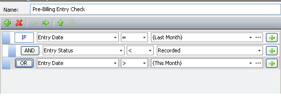 Before I run prebills for the prior month, I like to make sure that all time for that time period has been submitted to the billing department. I also like to make sure no one has accidentally entered any time for a future date that would not be found with their normal filtering. Can I run one filter to return all of those records?
