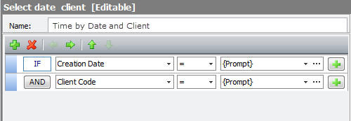 Selecting {Prompt} lets you manually enter criteria when the filter is used. For example, if you select 'Creation Date' and {Prompt}, you have the opportunity to enter the date when using the filter, as opposed to using the ellipses button to select a set date that cannot be changed.