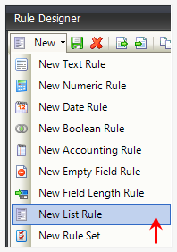 Click the New button arrow in the toolbar, and select the type of rule you want to create.