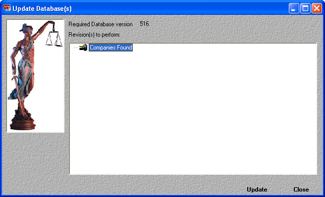 6. Click the Update button. You are prompted to make a backup copy of the database. It is strongly recommended that you make the backup.