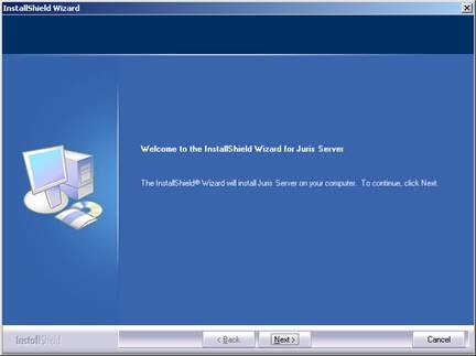 1. Browse to and execute the Juris Server X.XX.exe file. X.XX represents the version number of the file. See Figure 1.0