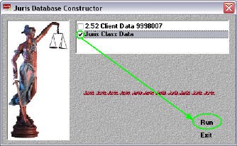 4. If you installed a new database, you must run the Database Revision Update utility before proceeding. On the Windows Start menu, point to Programs, then point to Juris, then point to Administrative Tools, and then click Database Revision Update.