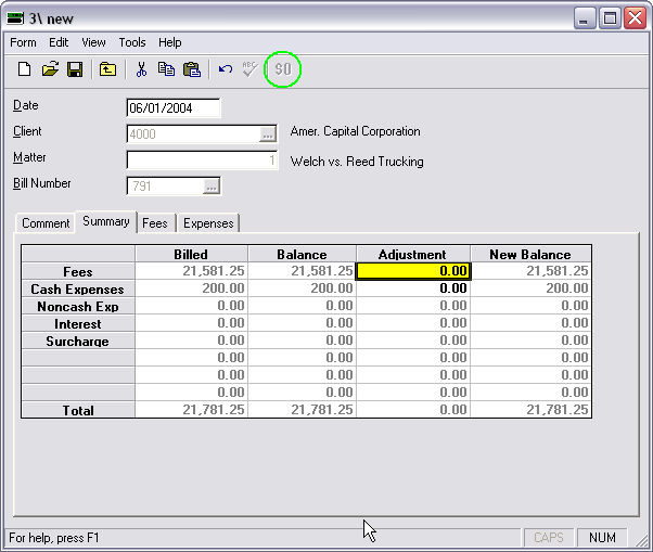 TIP: The Write Off Balance option can be used as a shortcut, instead of entering a negative entry to write off particular amounts on a bill. The Write Off balance option only becomes enabled if you have placed focus on a balance item on either the Summary, Fees or Expenses tab. The Write Off Balance feature can be accessed by selecting Tools > Write Off Balance.